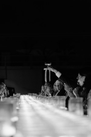 For the reception, two long, impeccably styled tables welcomed guests, glowing under the soft flicker of over 800 candles, creating an intimate yet elegant atmosphere. The dinner setting was further transformed by a breathtaking projection of the sea, illuminated by a moonlit glow-a seamless fusion of nature and refined event design. Every element was thoughtfully curated, resulting in a wedding that was not just an event, but an immersive, sophisticated experience.